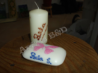 Conjuntos de vela e sabonete e vela com prato.